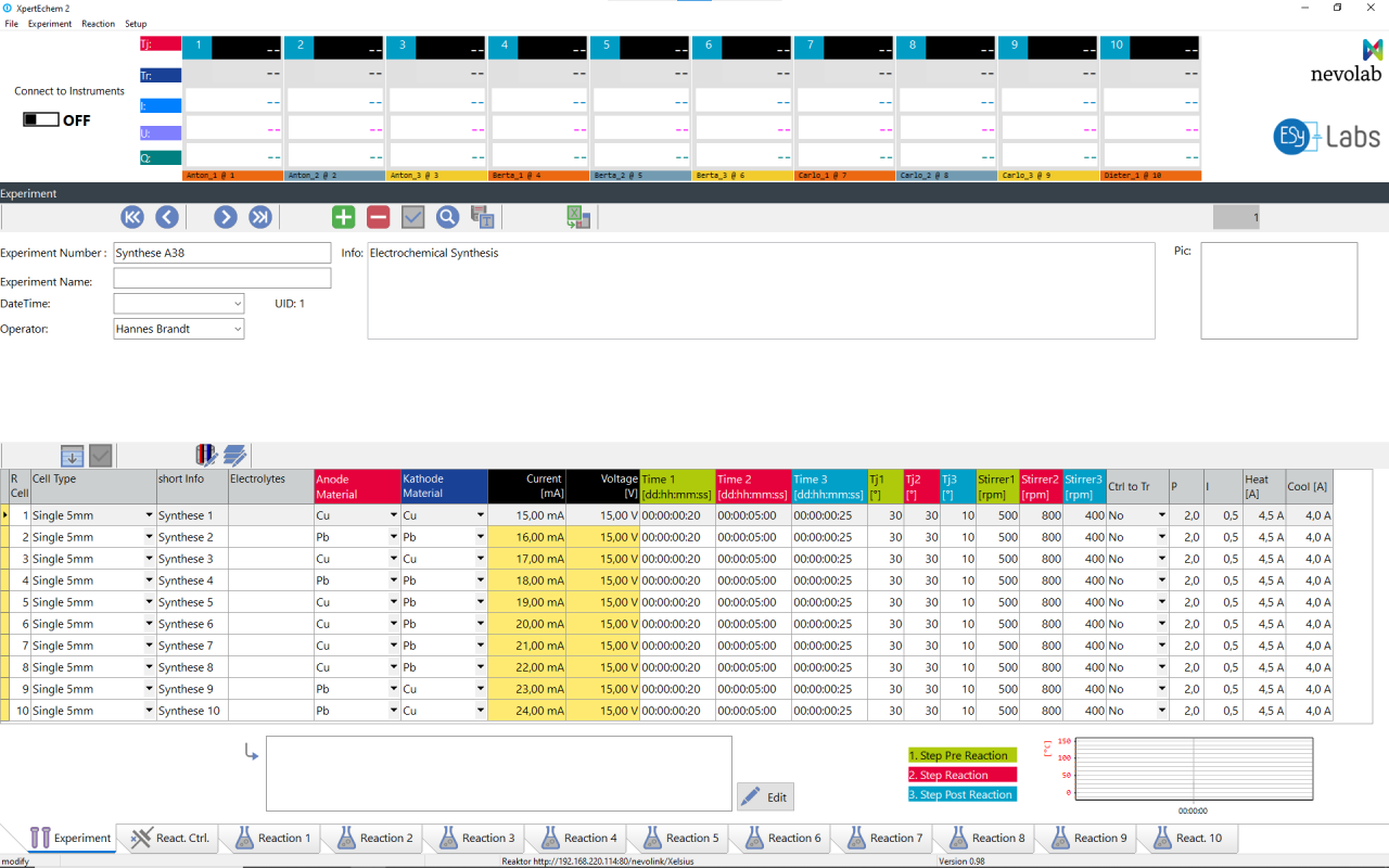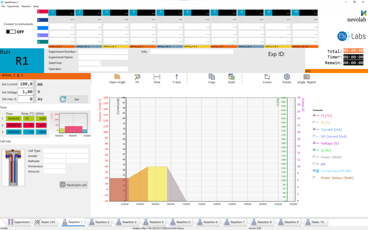 Die ElectroSynth XperteEchem Software bietet Funktionen für die Planung, Implementierung, Kontrolle und Führung der Experimente, sowie Monitoring und Dokumentation der dabei entstehenden experimentellen Daten: