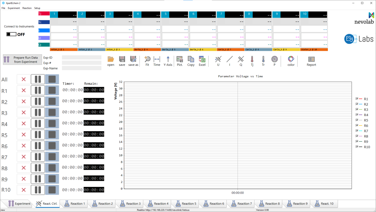 Ein „Reaction control-Reiter“ erlaubt das live-Monitoring aller oder ausgewählter Experimente,