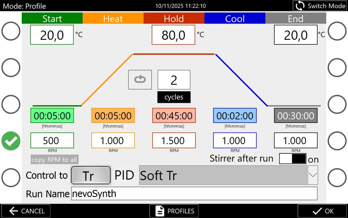 PI temperature control can be optimized using varying presets, advanced users may define PI settings according to their needs.