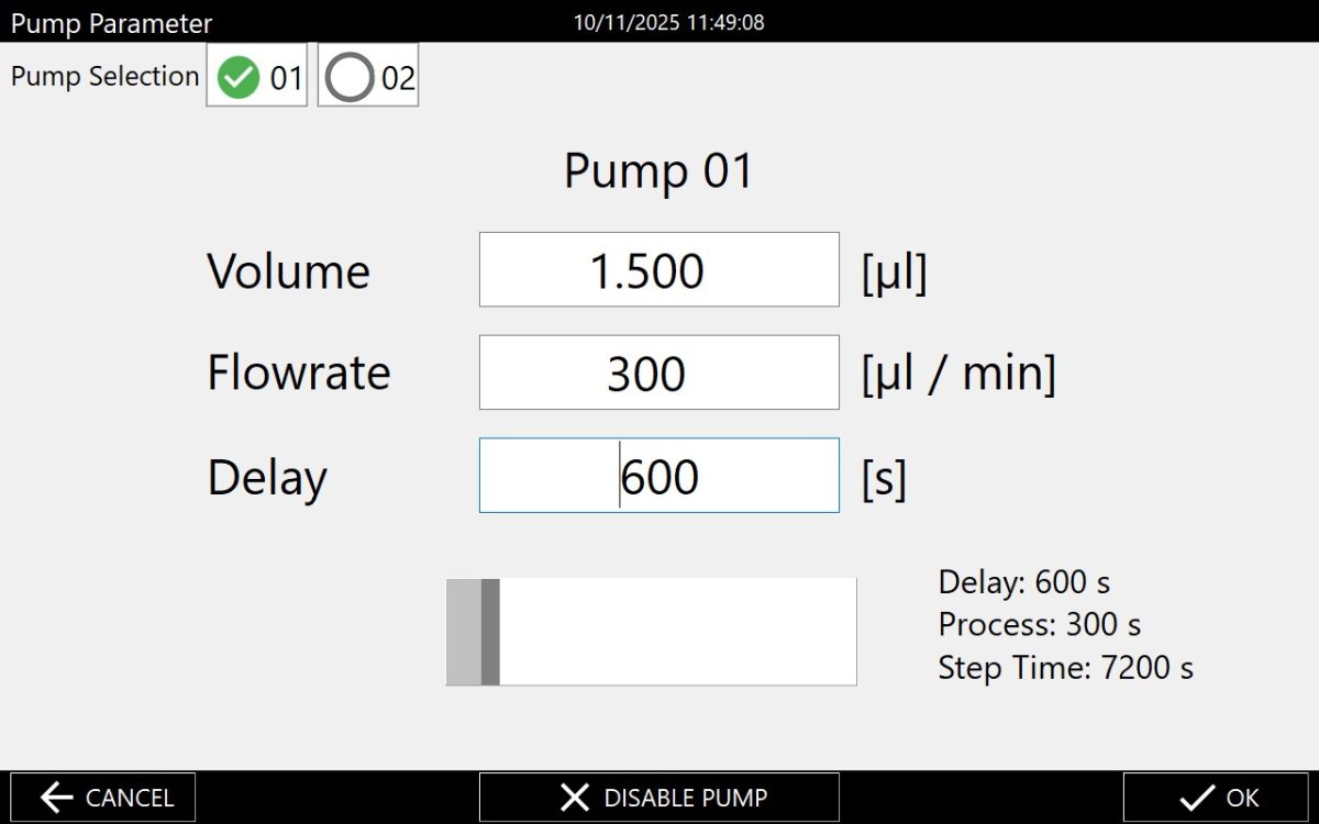 Funktionelle Integration der Dosierpumpe innerhalb des Reaktionsprofils dargestellt durch ein „Pumpen-Icon“ (siehe roter Pfeil).