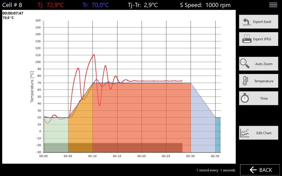 Für letztere Möglichkeit wird ein interner Temperatursensor verwendet, in Verbindung mit einer PI-Regelung wird eine dynamische Regulierung der Temperatur des Reaktionsmediums möglich.